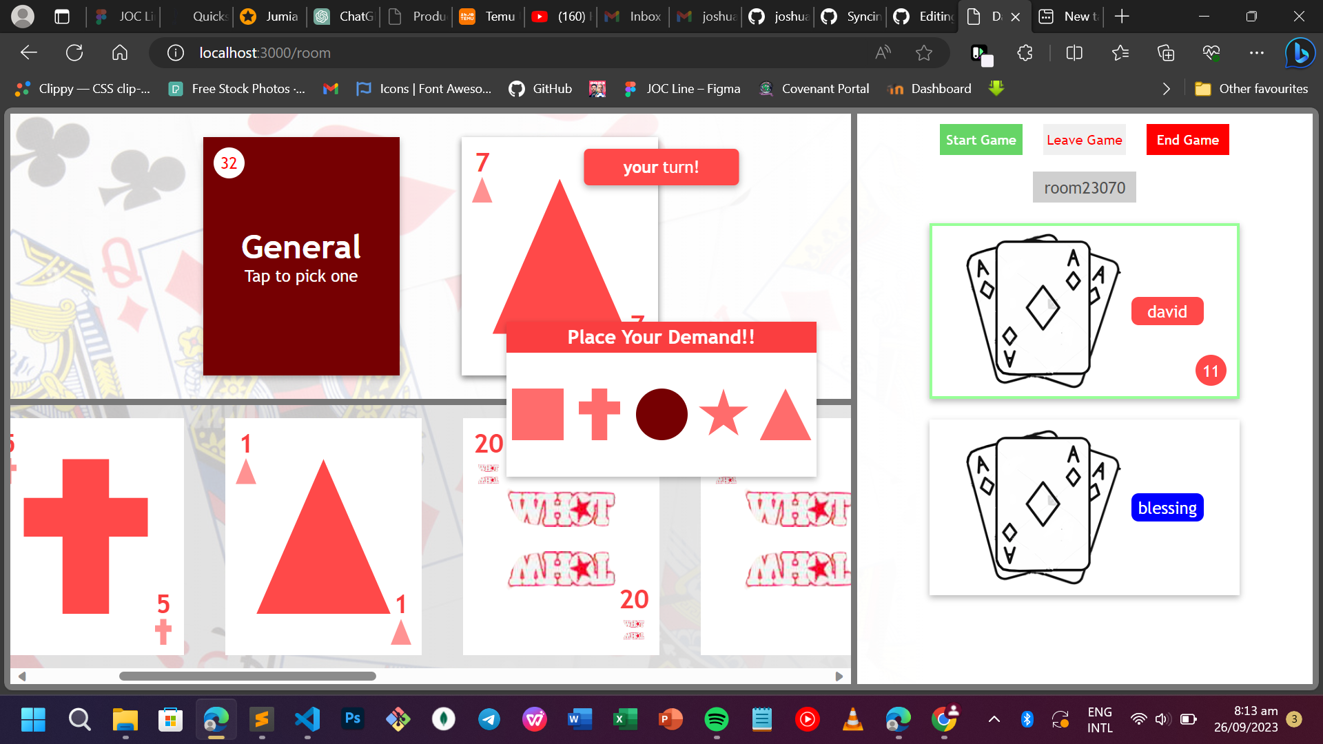 whot is a very popular nigerian card game. I belive for my nigerian friends I don't need to go any further. I built an online multiplayer version using websockets (socket.io) that accomdates up to 4 players in one game room. check it out and feel free ro play with your friends